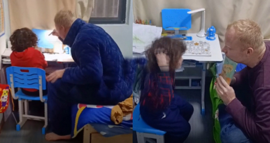 ·老外爸爸辅导孩子写汉字气到崩溃:一行字写了3小时。