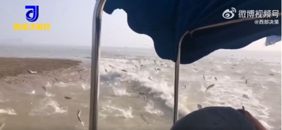 ·壮观!洞庭湖游艇过后,成百上千条鱼儿跃出水面。