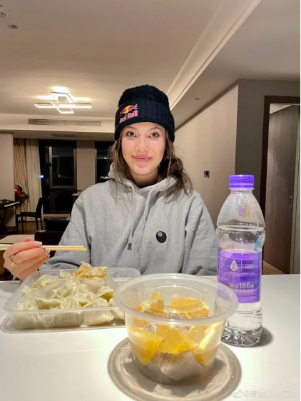 中国自由式滑雪运动员谷爱凌乘机回国,她说:北京的饺子,全吃完了!
