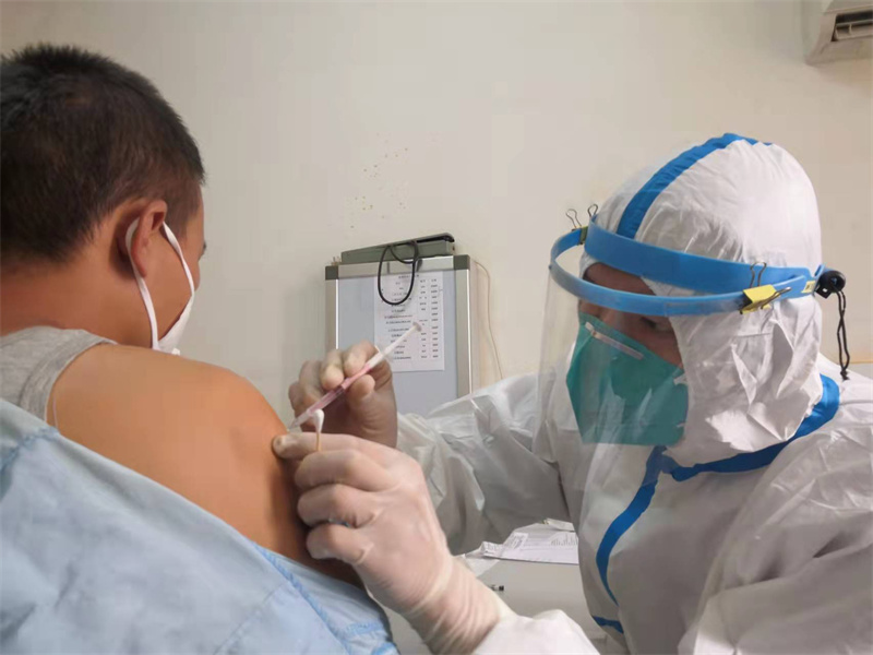| 驻中非使馆为在中非中国公民接种新冠疫苗加强针。中国驻中非共和国大使馆供图 |