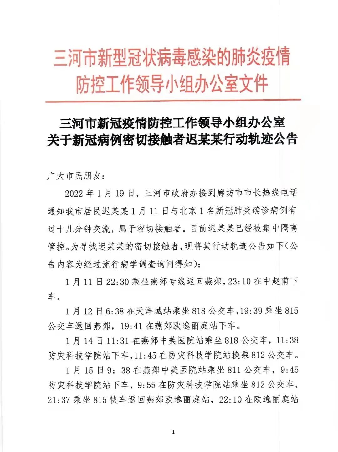据“网信三河”微信公众号消息,燕郊发现一北京确诊病例密接者,曾交流十几分钟。