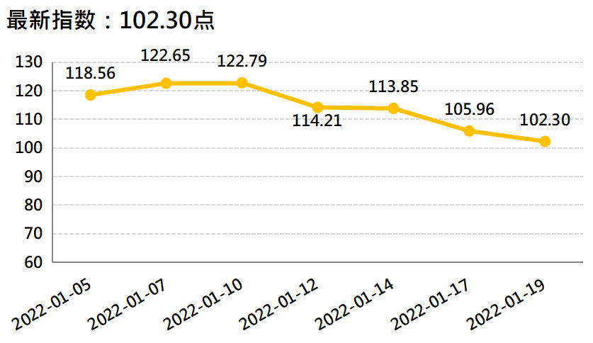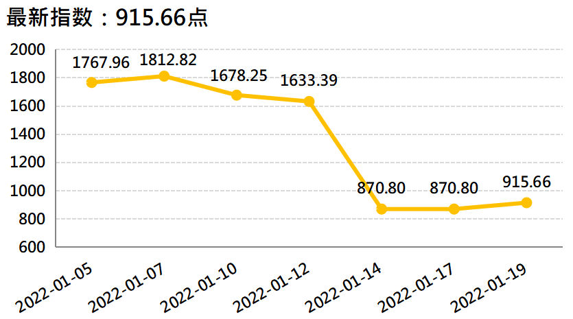 数据显示,截至1月19日,国内香蕉产地价格指数报102.30点,较上一发布日(1月12日,下同)114.21点下跌10.42%;香蕉销地批发价格指数报131.15点,较上一发布日126.36点上涨3.79%;进口蕉价格指数报1213.97点,较上一发布日1240.11点下跌2.11%;皇帝蕉产地价格指数报915.66点,较上一发布日1633.39点下跌43.94%。