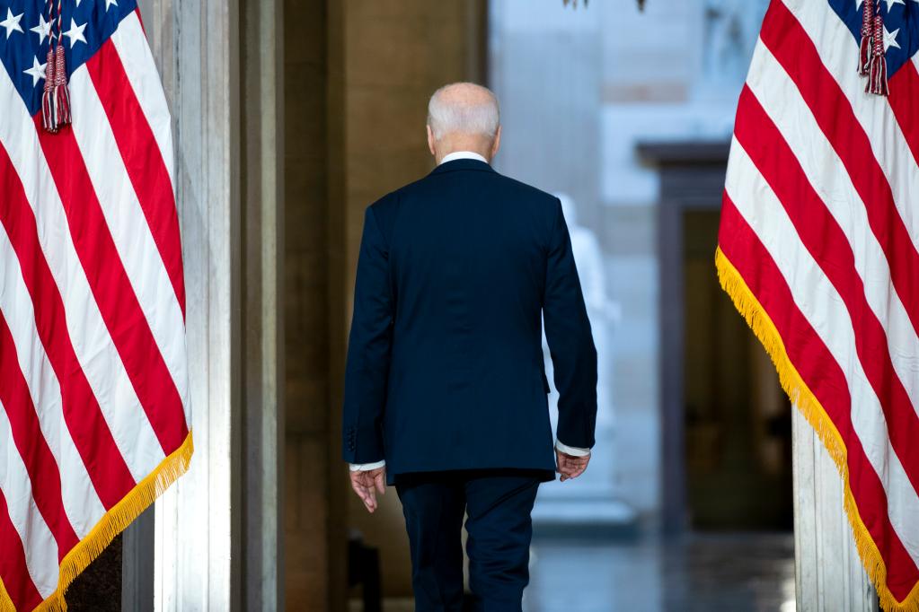 1月6日,美国总统拜登在华盛顿国会大厦发表讲话后离开。新华社发(Pool图片/格雷格·纳什摄)