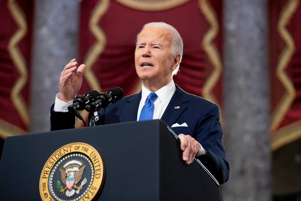1月6日,美国总统拜登在华盛顿国会大厦发表讲话。(新华社发,迈克尔·雷诺兹摄)