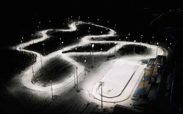 北京冬奥会国家越野滑雪中心夜景(无人机照片)。新华社记者杨世尧摄