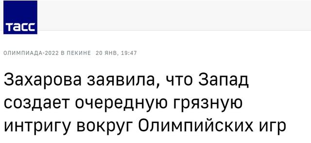 塔斯社:扎哈罗娃称,西方正围绕奥运会制造另一个肮脏阴谋