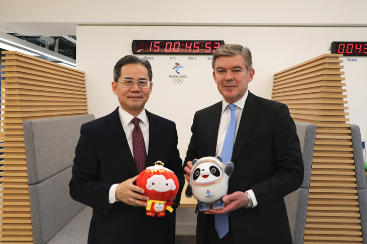 | 中国驻英国大使郑泽光走访英国奥委会总部。中国驻英国使馆供图 |