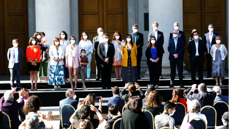 当地时间1月21日,智利当选总统博里奇同其公布的新一届政府阁员与公众见面(图片来源:智利《信使报》网站)