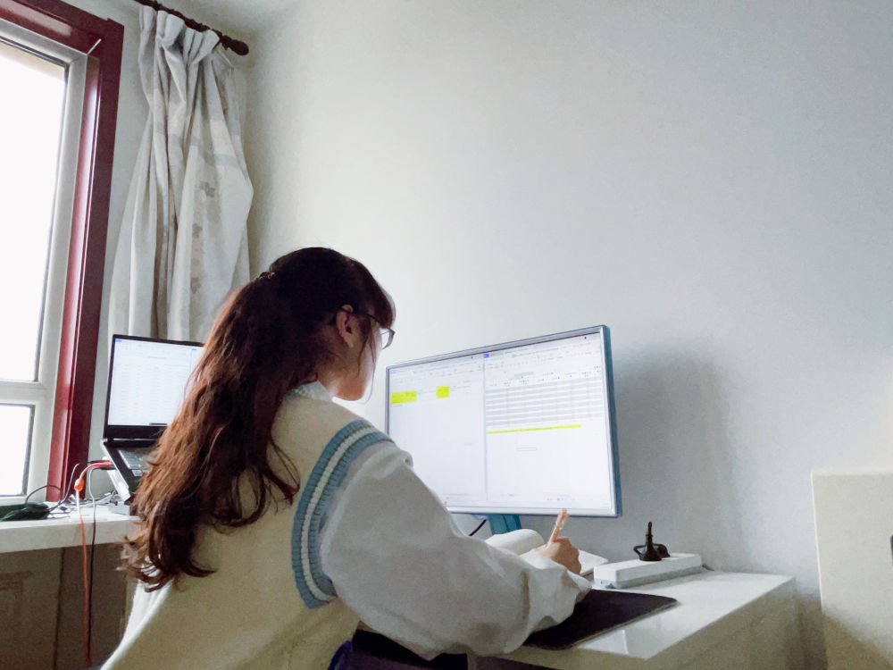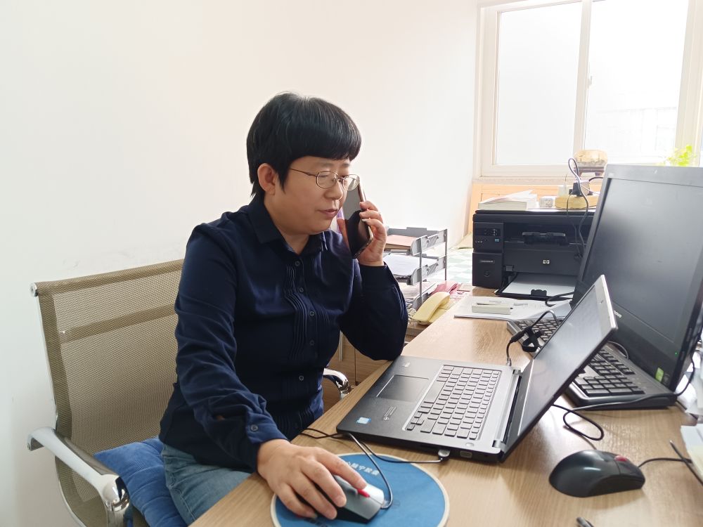 天津科技大学学工部干部刘冬雪正在整理报送信息。受访者供图