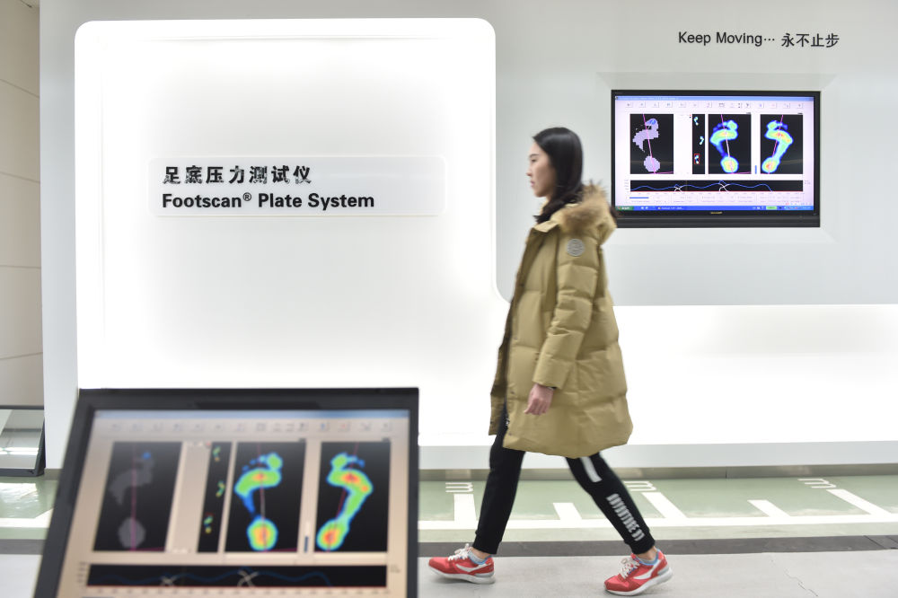 资料图:一家企业员工在实验室进行足底压力测试,该技术可用于运动鞋个性化定制。新华社记者宋为伟摄