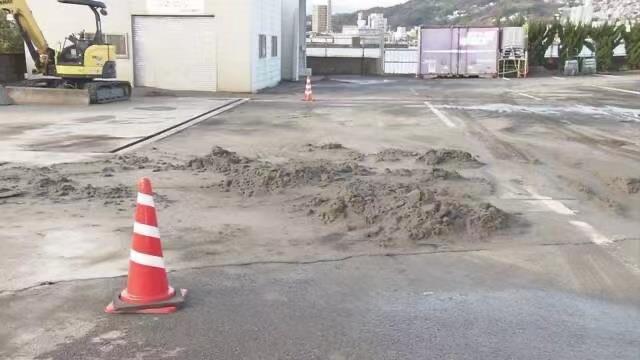 据日本九州大分县24日消息,本月22日凌晨日本九州附近日向滩海域发生里氏6.4级地震,导致当地大分市港口附近的一家运输公司的地表出现“砂土液化”的灾害现象。(总台记者 何欣蕾)