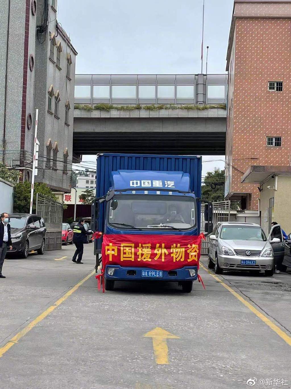 24日,由中国-太平洋岛国应急物资储备库(广东)准备的中国援助汤加物资,在广州白云国际机场附近一家仓库集结,即将运往汤加。这批物资包括饮用水、罐头肉、口罩、手套、帐篷、对讲机等。(记者王攀、马晓澄、陆浩)