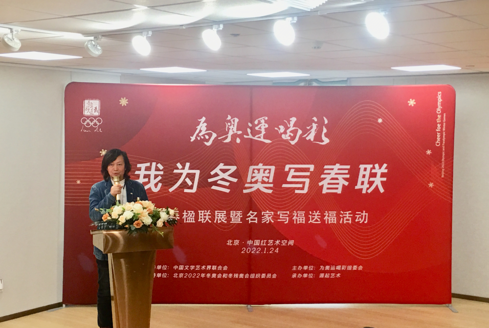 新华社北京1月24日电 24日,由为奥运喝彩组委会主办的“为奥运喝彩·我为冬奥写春联”新春楹联展暨名家写福送福活动在中国红·艺术空间举办。