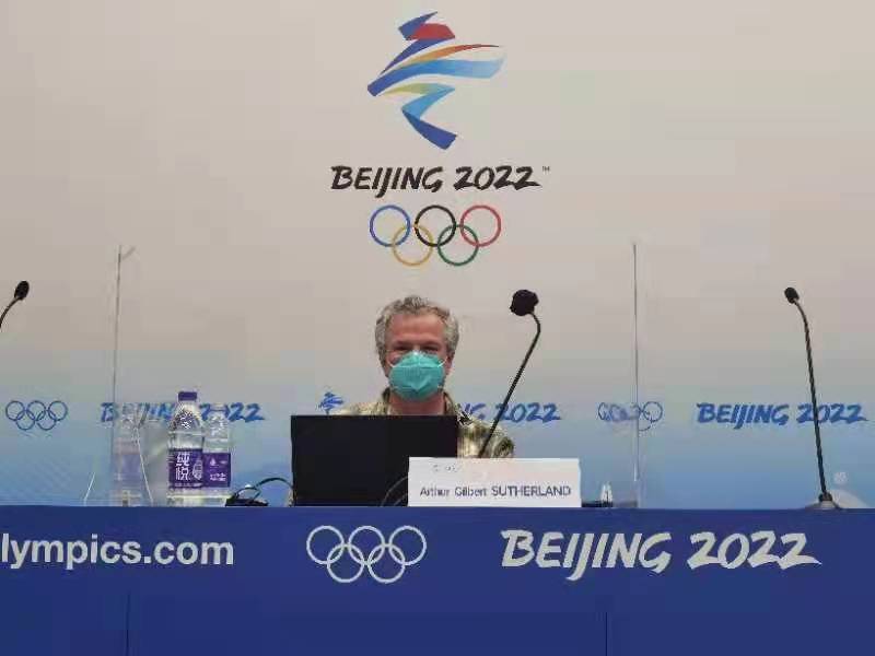 1月24日,国际奥委会制冰工程顾问阿·吉·萨瑟兰在媒体吹风会上。新华社记者 岳冉冉 摄