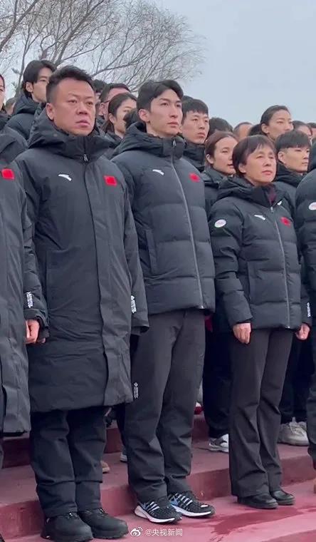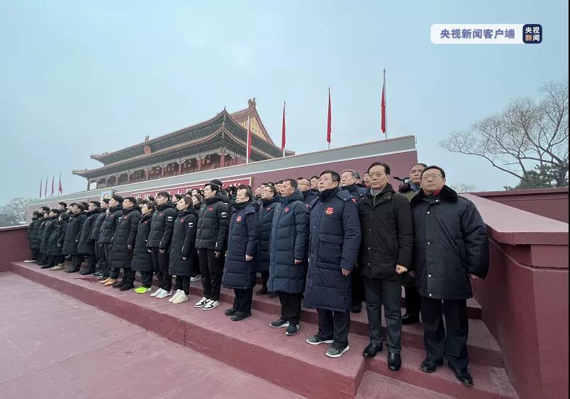 1月25日清晨,来自北京冬奥会中国体育代表团的100多名运动员和教练员代表,来到天安门广场观看升国旗仪式,并宣誓出征。
