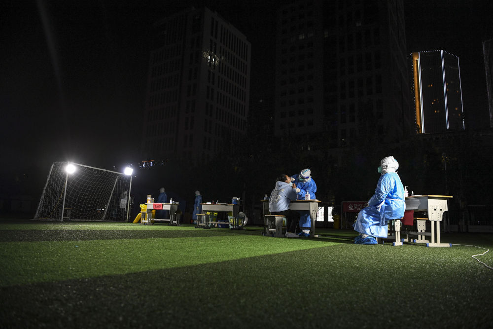 夜幕下,分散在城市街头的采样点闪着微光,医务人员还坚守在岗位上忙碌着。这一处处光芒,点亮了抗疫寒夜。