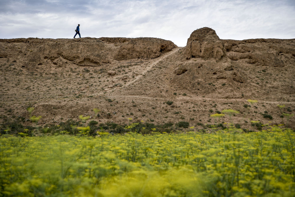 ↑2021年8月12日,李世翔在宁夏海原县西安州古城遗址上。