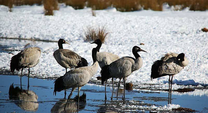 据了解,越冬黑颈鹤第二个峰值将出现在2月中旬至4月中旬,届时,云南大山包附近越冬地的黑颈鹤会向大山包集结休整后迁往繁殖地,这里的黑颈鹤数量会再次产生较大波动。