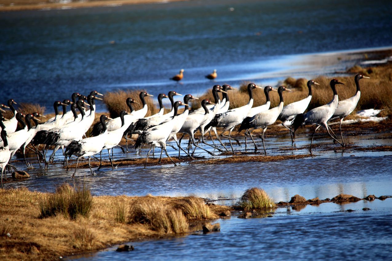 近日,中国野生动物保护协会鹤类联合委员会组织的全国越冬鹤类同步调查公布显示,云南大山包以1926只黑颈鹤数量创历年同期新高。