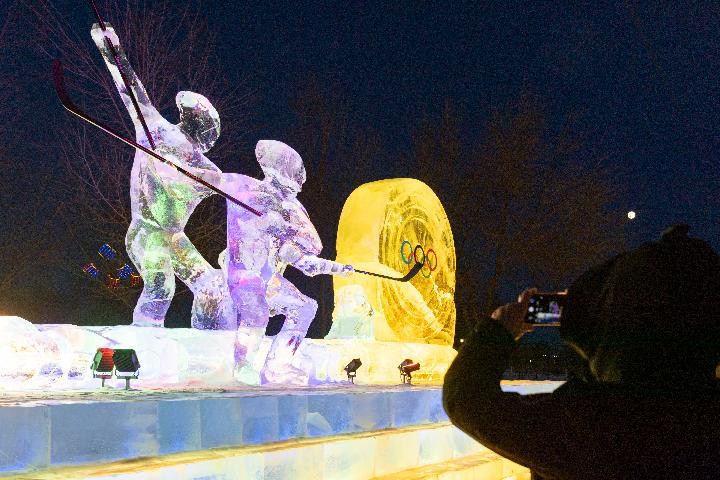 新华社哈尔滨1月25日电(记者杨思琪)“夜幕下的哈尔滨,变身北京冬奥会‘氛围组’!”速滑少年、滑雪小将、冰球对垒,还有可爱的“冰墩墩”“雪容融”……这个冬天,在以冰雕闻名的哈尔滨,大大小小的冰雪景观现身街道、广场、商圈和出入城口,流光溢彩。游客、市民纷纷拍照留念,记录这份快乐和惊喜。