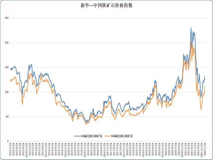 新华财经北京1月25日电(郑豪)新华-中国铁矿石价格指数显示,1月18日至1月24日间,进口铁矿石价格偏强运行。数据显示,1月24日,我国62%品位进口铁矿石价格指数为133,较1月17日上涨7.26%;58%品位进口铁矿石价格指数为112,较1月17日上涨13.13%。