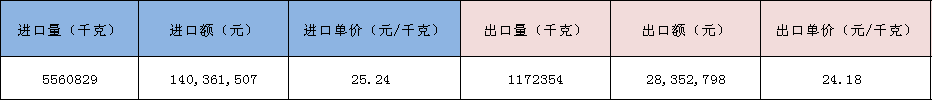表3 我国生咖啡进出口情况(2021.12)