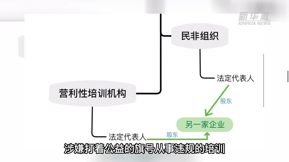 记者调查发现,这家托育园是由某民非组织运营的公益性托育机构。然而在寒假期间,该民非组织通过与营利性培训机构合作的方式开设学科类培训,而这两家机构的法人又同时持股另一家企业,两人间有着千丝万缕的联系,涉嫌打着公益的旗号从事违规的培训。