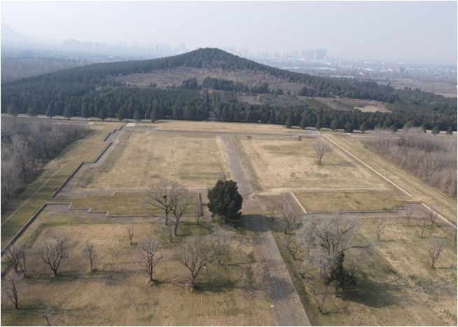 这是从外城东门向西拍摄的秦始皇帝陵。(图片由秦始皇帝陵博物院提供)