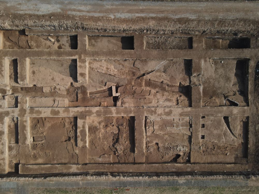 这是秦始皇帝陵园外城东门遗址发掘全景。(图片由秦始皇帝陵博物院提供)