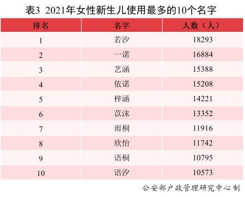 2021年出生并已经进行户籍登记的女性新生儿中,一诺、艺涵、雨桐、语桐等使用频率最高的名字不仅体现出了温婉,更体现了传统诗词的意境美。