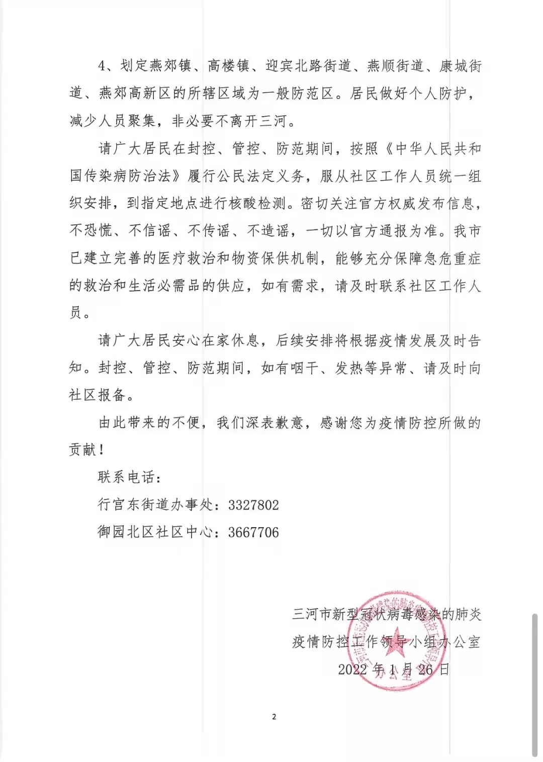 河北三河:检测出1名核酸阳性人员,划定封控区、管控区、防范区
