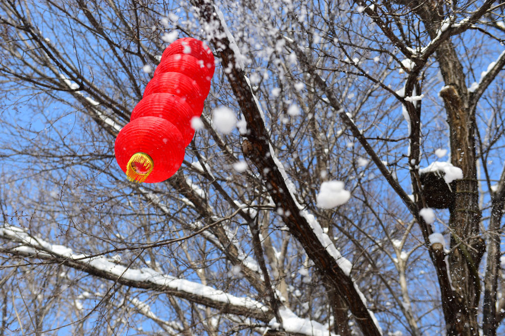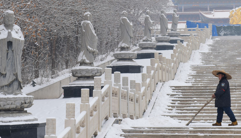 ↑2021年1月2日,工作人员在乌鲁木齐红光山景区除雪。