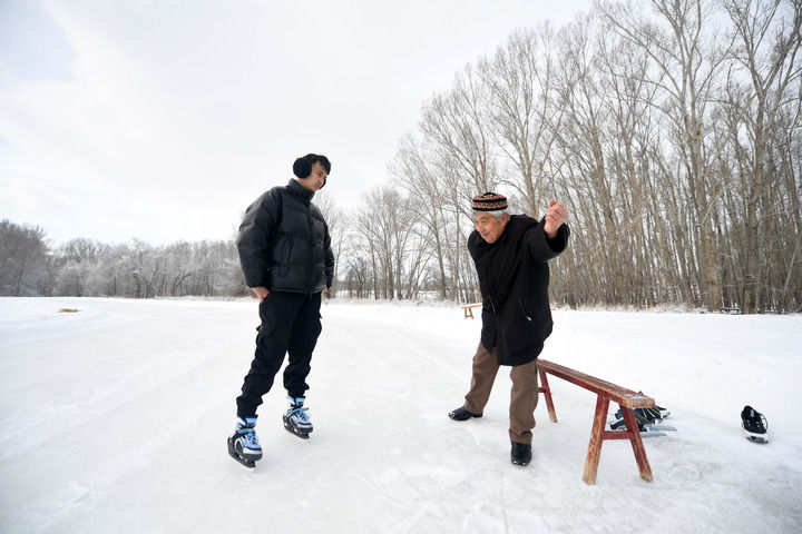 老人自幼爱好冰球,年轻时曾是新疆塔城三中冰球队的主力,那时的他有着健硕的肌肉和一股子不认输的劲儿。但一场与职业队的比赛中因争议判罚而告负让他至今耿耿于怀。