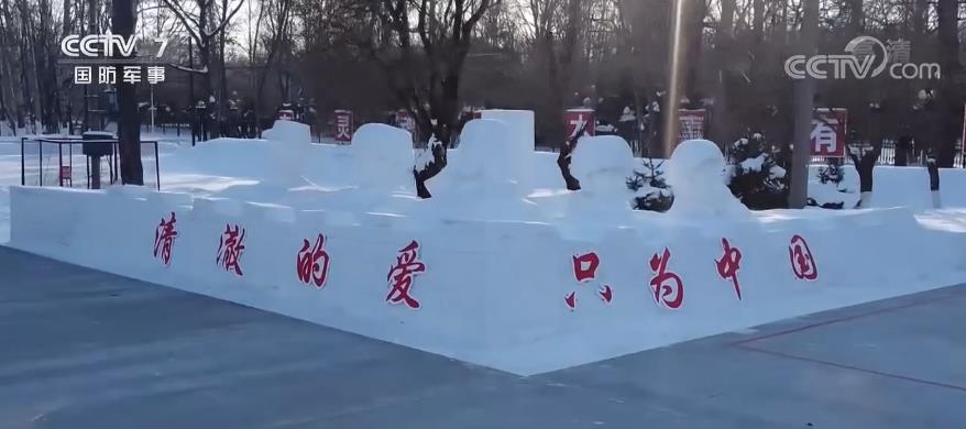 身处冰天雪地,同样怀着为祖国争光的心。奥运健儿拼搏争先,官兵们也以自己的行动戍守祖国边疆。营区里,他们用一组组精美的雪雕表达着自己的爱国情怀。