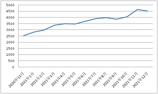 图:2020年12月-2021年12月中国进口保税航空煤油到岸价格走势