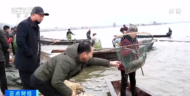在长塘镇湖田村康家湖畔,渔民们一边喊着号子,一边期待一年来辛勤养殖,湖水给予他们的馈赠。