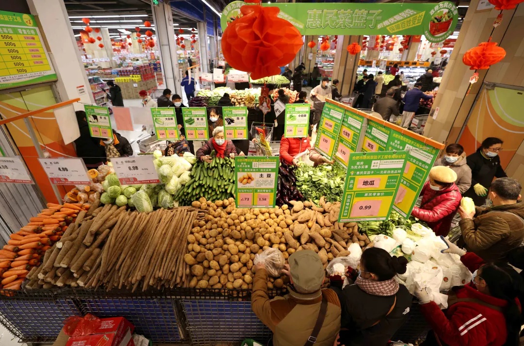 ▲ 1月25日,安徽合肥市一大型超市内,市民选购“惠民菜”。(新华社发 解琛摄)