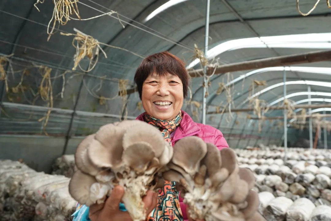 农户在采摘蘑菇。(马羚摄)