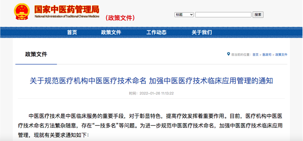 中医医疗技术是中医临床服务的重要手段。26日公布的《关于规范医疗机构中医医疗技术命名 加强中医医疗技术临床应用管理的通知》说,目前,医疗机构中医医疗技术命名方法繁杂随意,存在“一技多名”等问题。