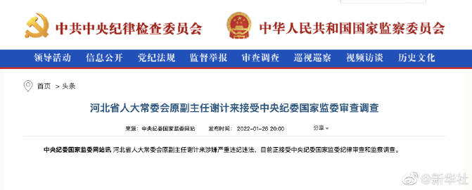 【河北省人大常委会原副主任#谢计来接受中央纪委国家监委审查调查#】