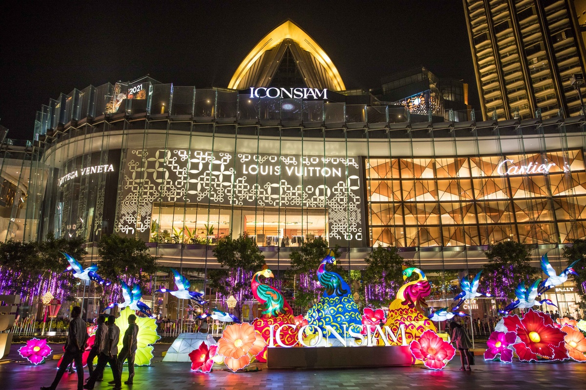 2021年2月7日,顾客从泰国曼谷暹罗天地商场前经过。(新华社记者,张可任摄)