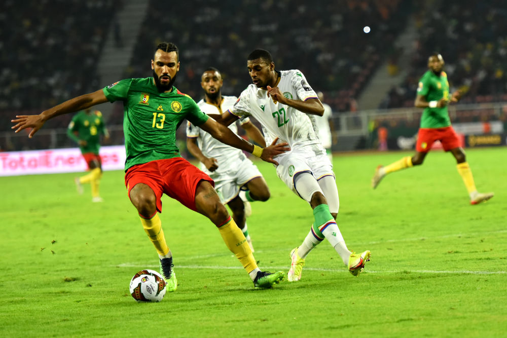1月24日,喀麦隆首都雅温得,喀麦隆球员舒波莫廷(13号)试图带球过人。新华社发(科普索摄)