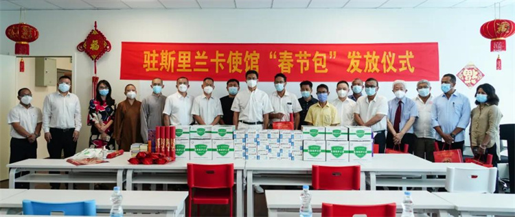 中国驻斯里兰卡大使馆发放“春节包”。中国驻斯里兰卡大使馆供图