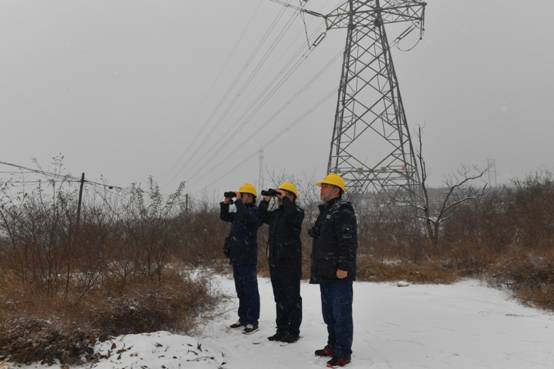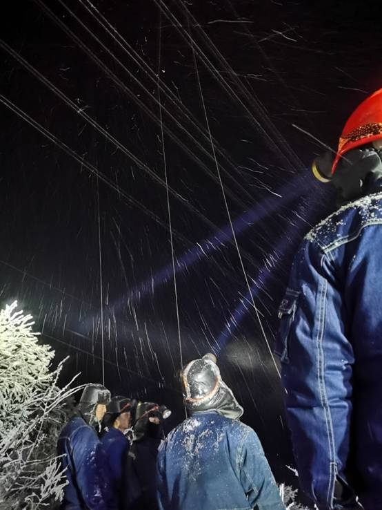图为国网河南焦作供电公司加强雨雪后电网巡视排查力度,对重要线路及设备开展特巡,重点检查线路有无覆冰覆雪情况,及时消除隐患