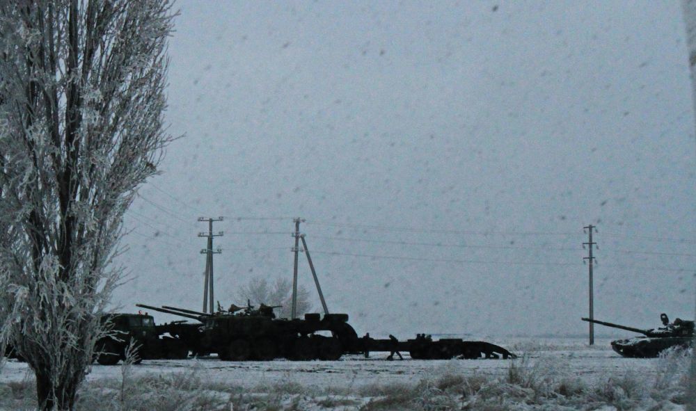 这是2016年12月24日在通往乌克兰顿涅茨克市的路上拍摄的从前线撤回的乌政府军重型火炮和坦克。新华社记者陈俊锋摄