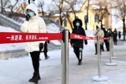 【#绥芬河市启动第二轮全民核酸检测#】为有效遏制疫情传播,27日起,黑龙江省绥芬河市启动第二轮全民核酸检测,并实施严格的交通管制措施。除公务、防疫应急、执勤执法、生活物资运输车辆外,其他社会车辆(包括私家车等)禁止上路行驶。各卡口均安排工作人员轮流值守。市民们顶风耐寒,等候采样。(记者徐凯鑫、侯鸣、唐铁富)