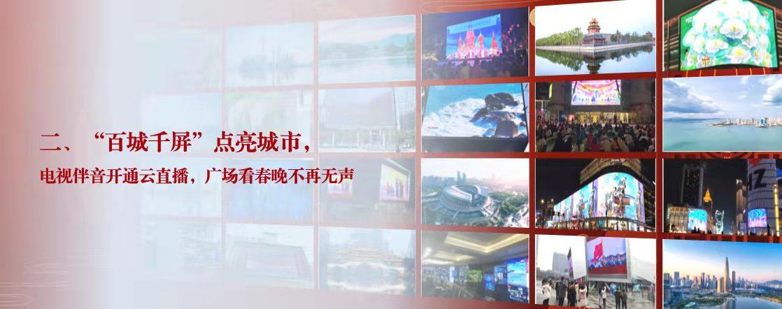 8K超高清电视是当今世界最高水平的电视标准,总台既是这个标准制定的参与者,同时也是这个标准应用的实践者。经过一年的努力,总台8K超高清电视标准完成了8K制作、播出、传输、呈现全链路系统建设。今年春晚将在CCTV-8K超高清频道直播。同时,还将通过“百城千屏”点亮城市,以“8K超高清频道+地标大屏”的融合方式,构建全新的空间媒体传播矩阵。值得一提的是,观众可通过“百城千屏随声听”微信小程序收听到与8K超高清大屏同步的电视伴音,从而实现人们在户外大屏前享受超清、炫彩、真切的视听盛宴。