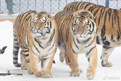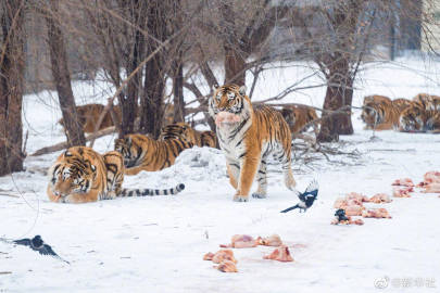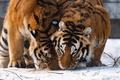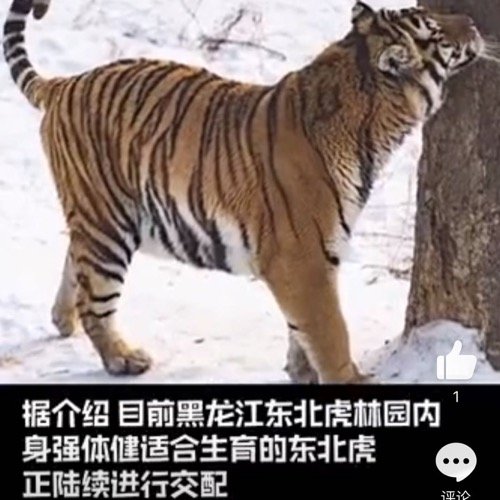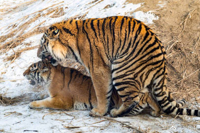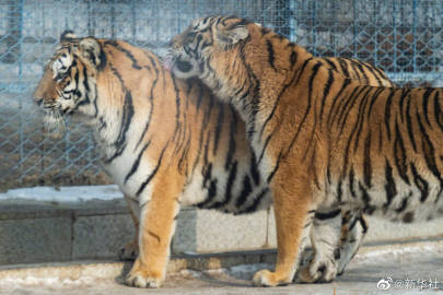 【#东北虎陆续进入交配期#】中国横道河子猫科动物饲养繁育中心是目前世界最大的东北虎人工饲养繁育基地,位于哈尔滨市的黑龙江东北虎林园是其重要饲繁地之一。据介绍,目前黑龙江东北虎林园内身强体健适合生育的东北虎正陆续进行交配,园区通过丰富食物种类、增加食物投喂量,调整饲料配比等方式,加强对这些东北虎的营养及保护。东北虎的交配期一般在每年12月至次年2月期间。东北虎孕育宝宝的时间在105天左右。