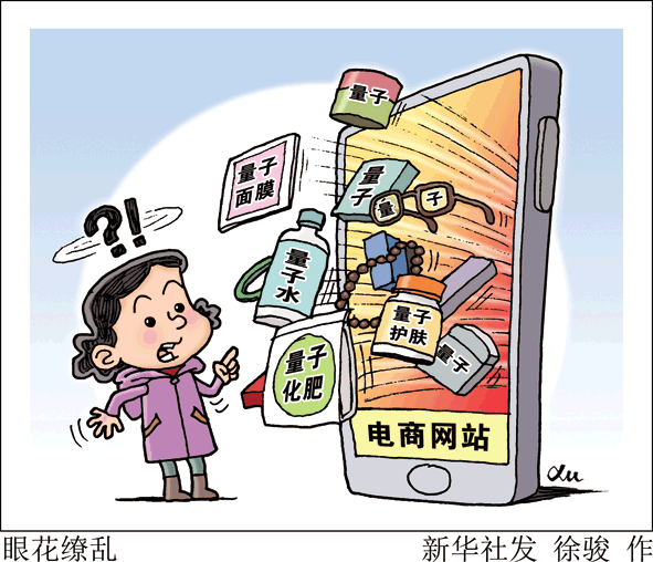 “搭车”高科技收取“智商税”。一家生物科技有限公司近日在其公司网站宣传称,其生产上市的“量子酒”通过量子技术提高震动频率,增强健康因子能量,具有酒疗功效。中国科技大学科技传播系副教授吴琦来指出,有关部门曾专门辟谣,市场上各类“量子产品”,均已被证实并不可靠,但量子水、量子肥料、量子按摩、量子鞋垫、量子药等产品仍屡见不鲜。