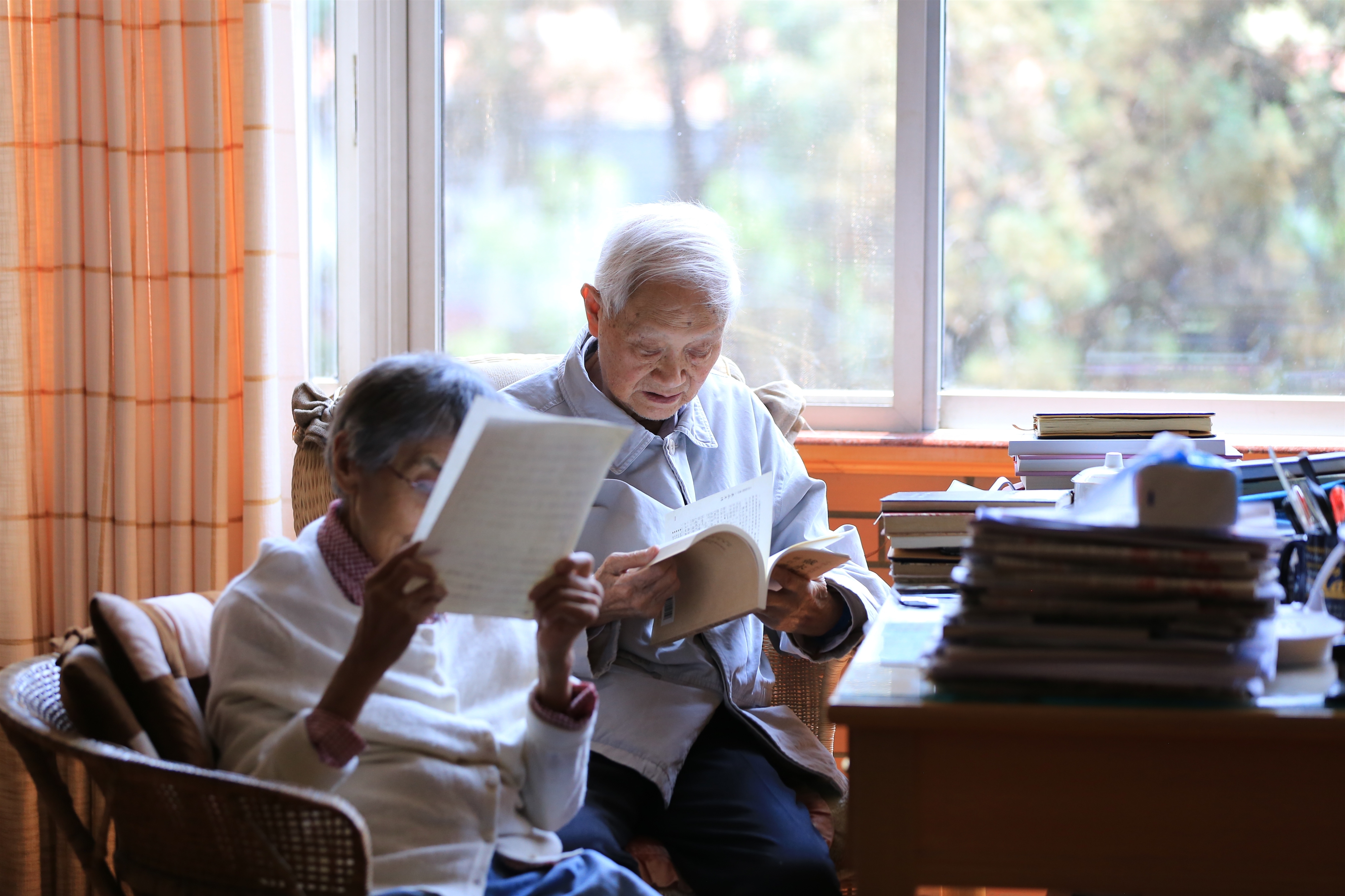 去年4月,戴永年院士(右)和夫人赵瑞芳在家中读书。